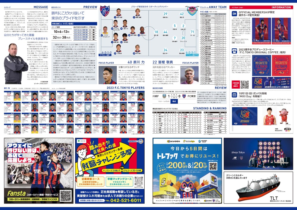 23 de setembro (Sáb) 2023 Meiji Yasuda Life Insurance Company J1 League Rodada 28 vs Sagan Tosu (Início às 15:00 / Ajinomoto Stadium) sobre o programa oficial do dia da partida, informamos conforme abaixo.