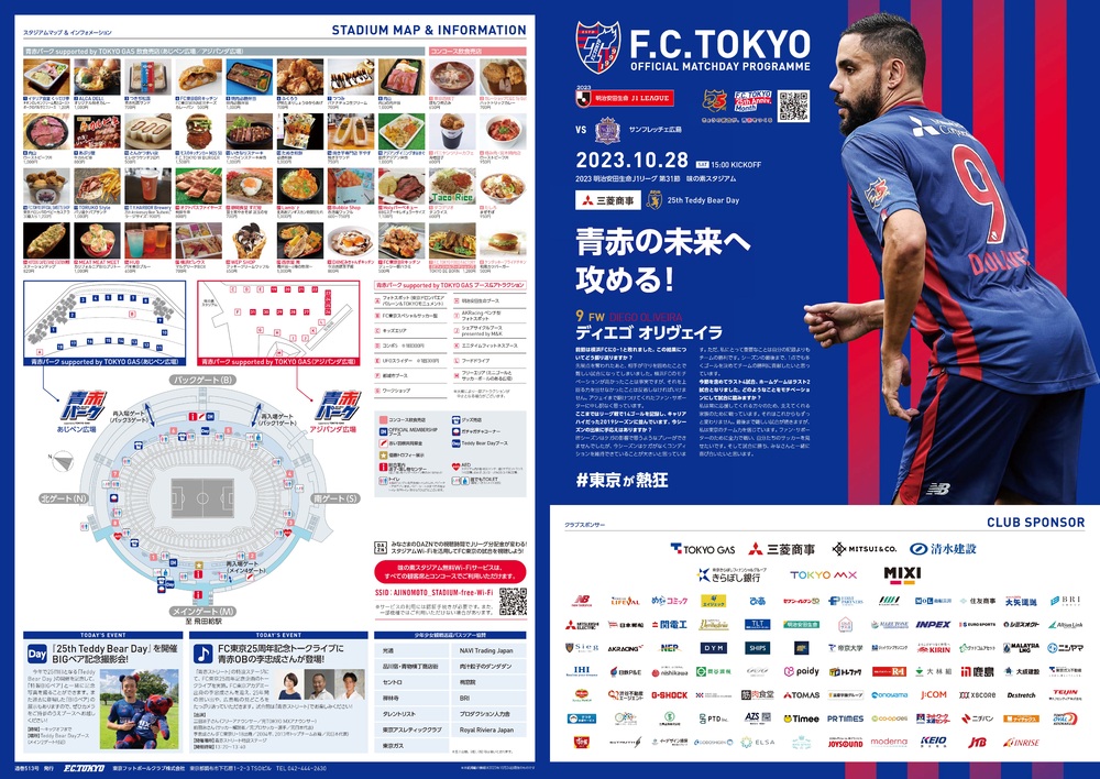 28 de outubro (Sáb) 2023 Meiji Yasuda Life Insurance Company J1 League Rodada 31 vs Sanfrecce Hiroshima (Início às 15:00 / Ajinomoto Stadium) sobre o programa oficial do dia do jogo, informamos conforme abaixo.