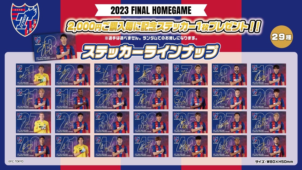 Na temporada 2023, em jogos em casa, após uma vitória, ao comprar produtos do FC Tokyo no valor de 2.000 ienes (com impostos) ou mais na loja de produtos do lado da casa dentro do estádio, você receberá 1 moeda da vitória como presente!!