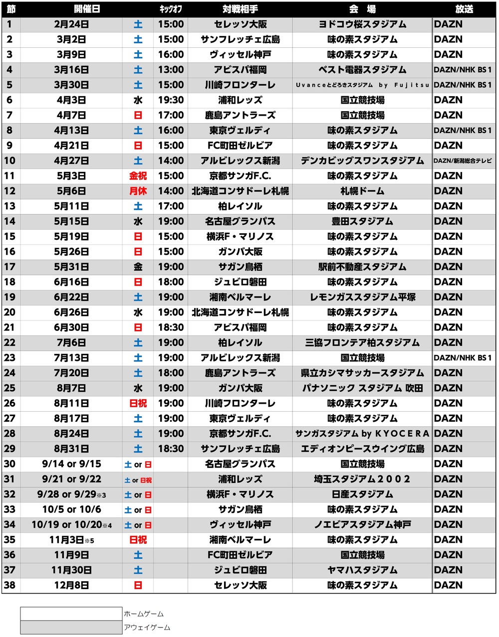 O calendário da Liga Meiji Yasuda J1 2024 e da Copa J.League YBC Levain 2024 foi decidido, e informamos conforme abaixo.