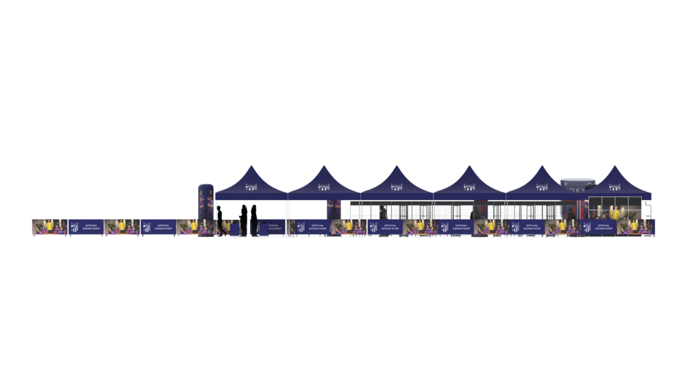 Dois grandes pontos de venda foram instalados fora do estádio (próximo ao Portão Principal 1) e perto do Portão 2 das arquibancadas, ampliando a área de vendas para facilitar as compras dentro da loja. Do lado de fora da loja, também estão instalados o novo emblema e banners dos jogadores, que são ótimos para fotos.