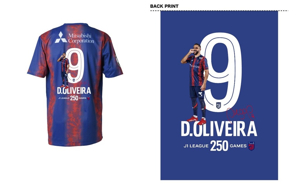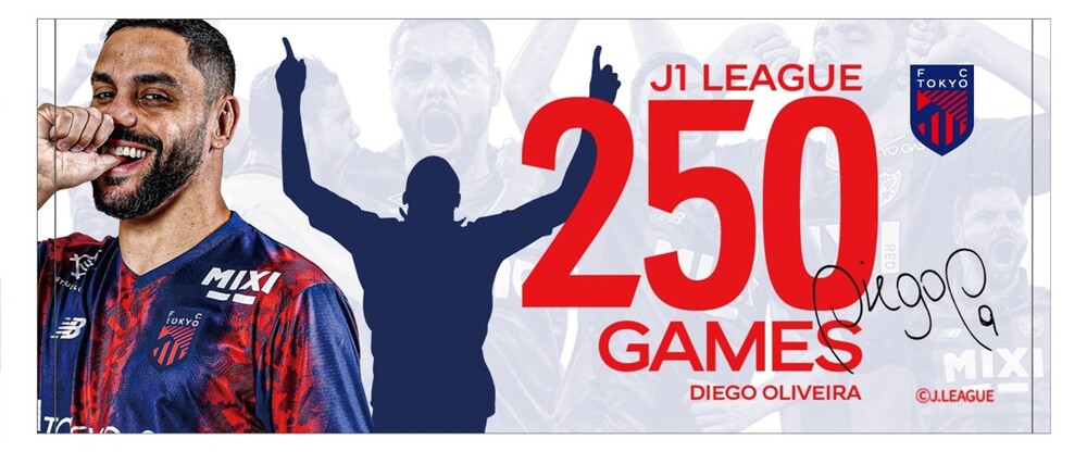 No dia 2 de março (Sáb) de 2024, na partida da Meiji Yasuda J1 League contra o Sanfrecce Hiroshima, o jogador Diego OLIVEIRA alcançou a marca de 250 jogos disputados na J1 League. Para comemorar, serão vendidos produtos comemorativos dos 250 jogos de Diego OLIVEIRA na J1 League por encomenda. Além disso, no dia 7 de abril (Dom), no local da partida contra o Kashima Antlers, serão vendidos produtos em colaboração com 【Koushu Masaru】, então não deixe de adquirir os seus.