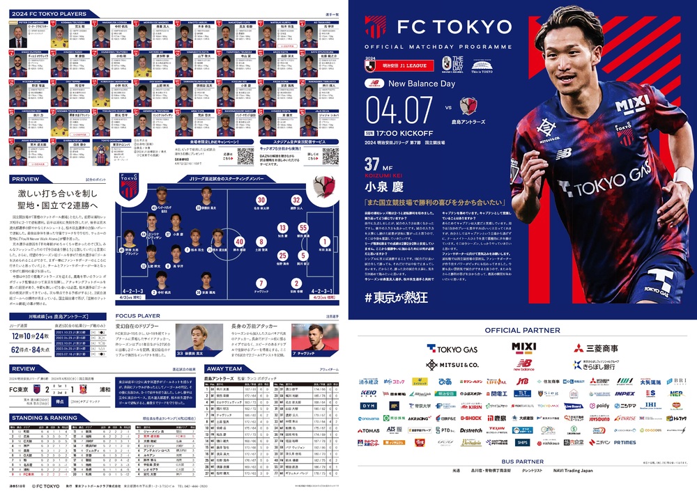 7 de abril (Dom) 2024 Meiji Yasuda J1 League Rodada 7 vs Kashima Antlers (Início às 17:00 / Ajinomoto Stadium) sobre o programa oficial do dia do jogo, informamos conforme abaixo.