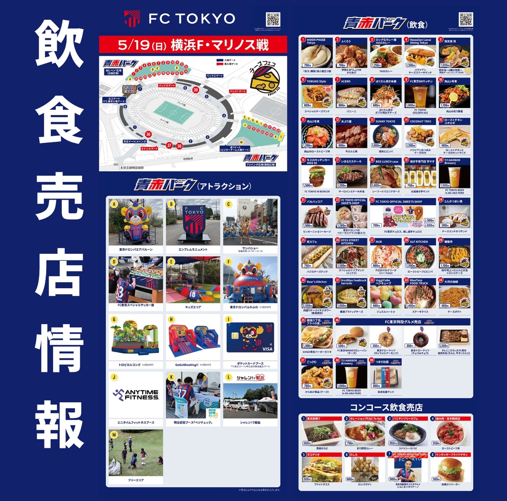 No dia 19 de maio (Dom), durante o jogo contra o Yokohama F.Marinos, AO-AKA PARK (fora do estádio) estará presente!! Informamos sobre as opções de alimentos e bebidas que serão vendidas no AO-AKA PARK e nas lojas dentro do concourse do estádio.