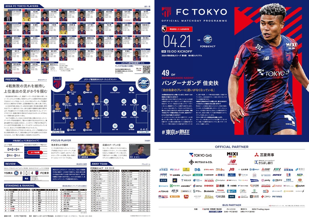 21 de abril (Dom) 2024 Meiji Yasuda J1 League Rodada 9 vs FC Machida Zelvia (Início às 15:00 / Ajinomoto Stadium) sobre o programa oficial do dia do jogo, informamos conforme abaixo.