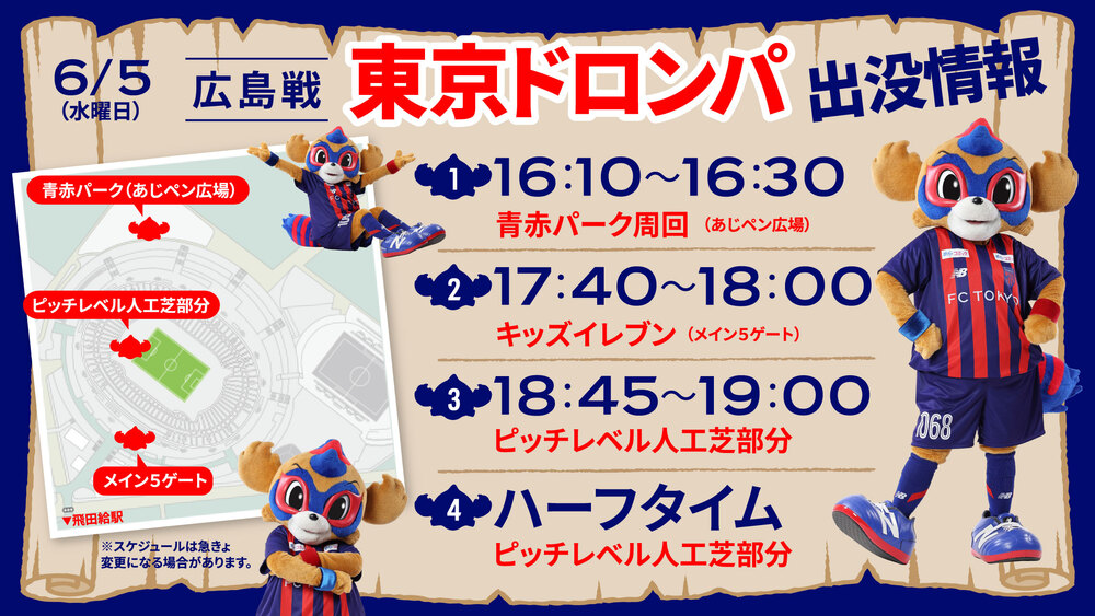 05/06 (Qua) Informações sobre a aparição do TOKYO DOROMPA na partida contra Hiroshima!