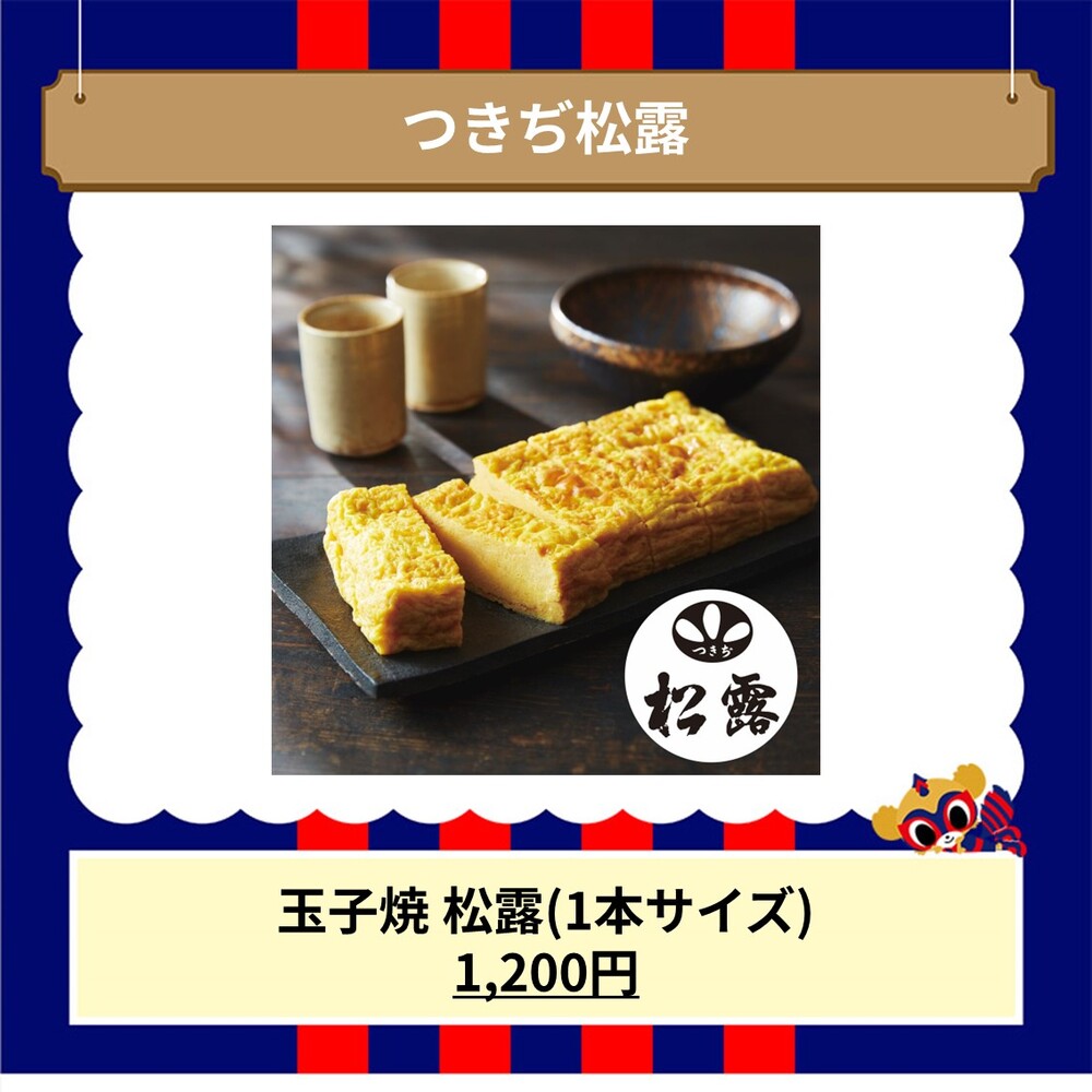 ・A demonstração e venda ao vivo do tamagoyaki da "Tsukiji Shoro" foi confirmada.