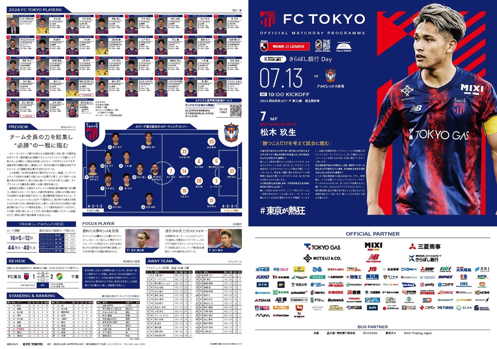 13 de julho (Sáb) 2024 Meiji Yasuda J1 League Rodada 23 vs Albirex Niigata (Início às 19:00 / Japan National Stadium) sobre o programa oficial do dia da partida, informamos conforme abaixo.