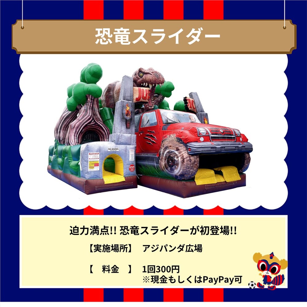 Neste dia, o "Dinossauro Escorregador" fará sua estreia! Também teremos um workshop para criar um penlight original, disponível por duas semanas consecutivas! Vamos criar memórias de verão no AO-AKA PARK antes do jogo!
