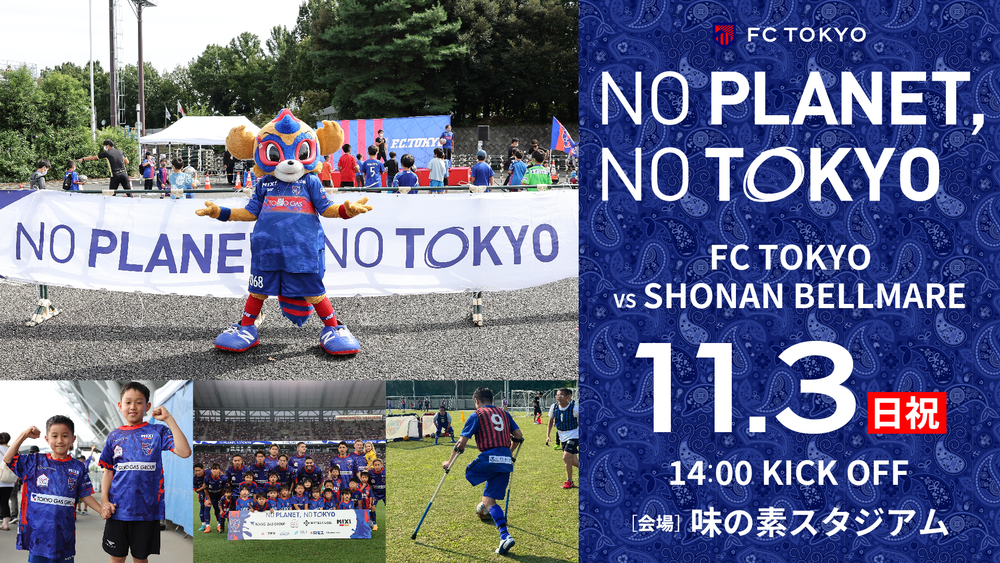 Este ano, no dia 3 de novembro (feriado Dom) na 35ª rodada da Meiji Yasuda J1 League 2024 contra Shonan Bellmare (início às 14:00 / Ajinomoto Stadium), realizaremos o evento "NO PLANET, NO TOKYO" e, além do dia da partida, também realizaremos vários eventos participativos.