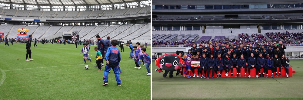 Durante os jogos em casa, aproveite o tempo para jogar futebol com os jogadores no campo principal (gramado natural) do Ajinomoto Stadium, onde os jogadores se destacam!