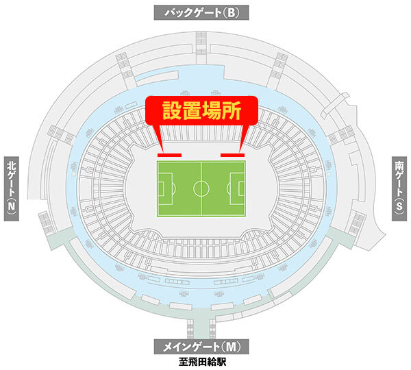 *Esta é a área de torcida do FC Tokyo, portanto, não é permitido usar uniformes ou produtos do time visitante, nem torcer pelo time visitante.