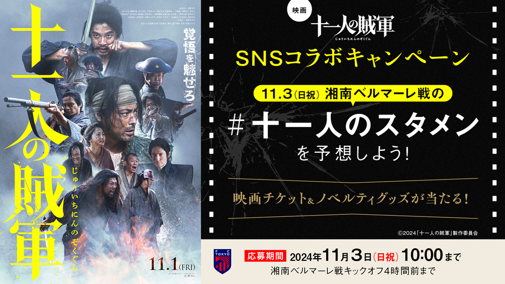 Foi decidido realizar a campanha colaborativa nas redes sociais entre o filme "Onze Bandidos", que será lançado em 1º de novembro de 2024 (Sex), e o FC Tokyo, conforme descrito abaixo.