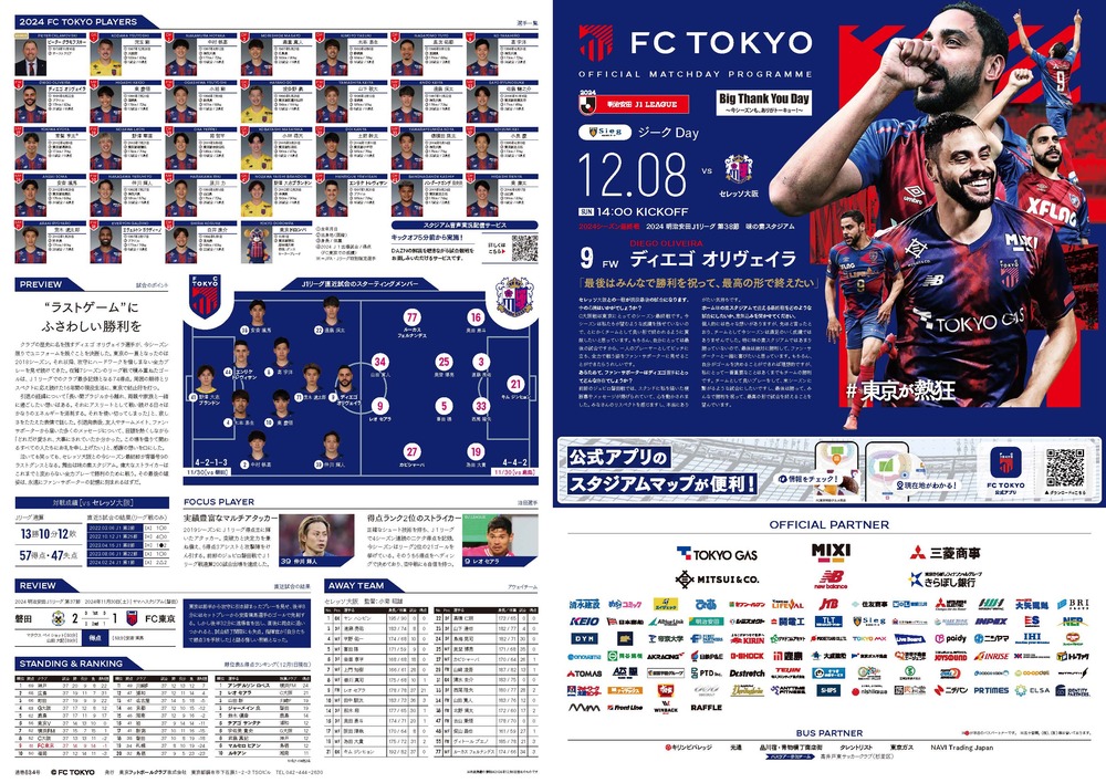 8 de dezembro (Dom) Liga Meiji Yasuda J1 2024 Rodada 38 vs Cerezo Osaka (Início às 14:00 / Ajinomoto Stadium) sobre o programa oficial do dia do jogo, informamos conforme abaixo.