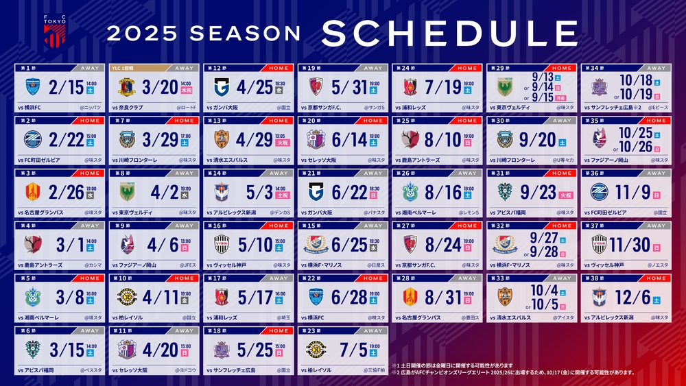 O calendário da Liga Meiji Yasuda J1 de 2025 foi decidido, portanto, informamos conforme abaixo.