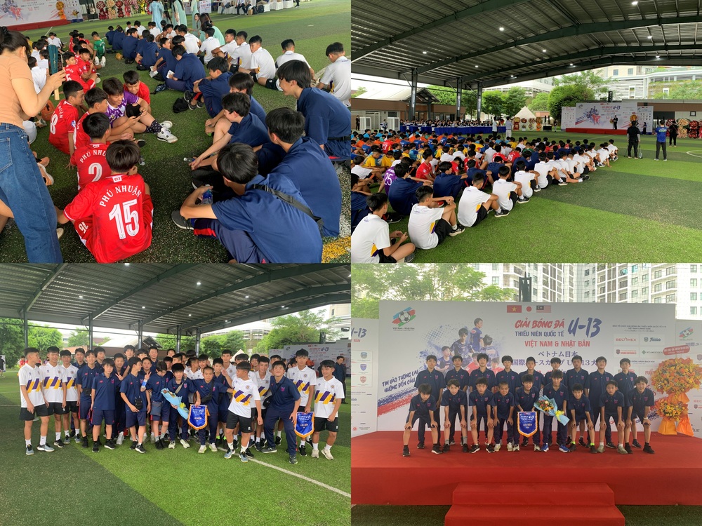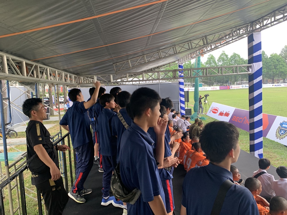 Após o almoço, participaram da cerimônia de abertura do "6º Torneio Internacional de Futebol Juvenil Japão-Vietnã U-13" e já foi possível ver a atitude proativa dos jogadores da equipe do Vietnã, que estavam ao lado, tentando interagir ativamente.