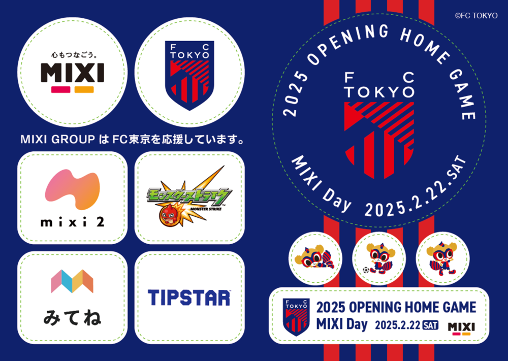 22 de fevereiro (Sáb) 2025 Meiji Yasuda J1 League Rodada 2 vs FC Machida Zelvia (Início às 15:00 / Ajinomoto Stadium), com o patrocínio do parceiro do clube "MIXI, Inc.", realizaremos o 'MIXI Day'.