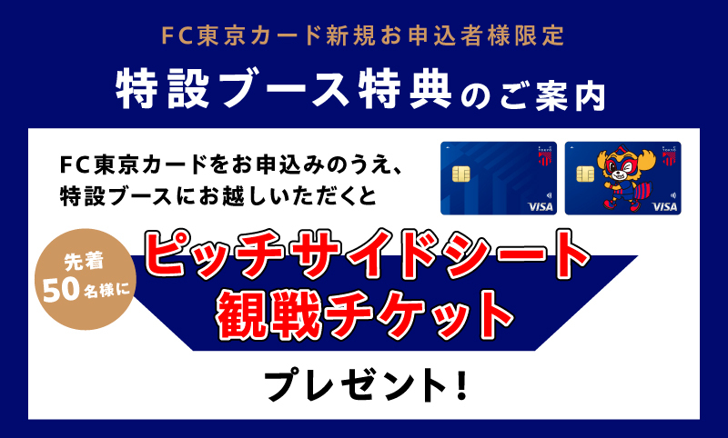 Durante o período de inscrição para o cartão FC Tokyo, os primeiros 50 clientes que se inscreverem e visitarem o estande especial receberão um ingresso para assistir ao jogo Kawasaki Frontale no dia 29 de março (Sáb) nos assentos à beira do campo!