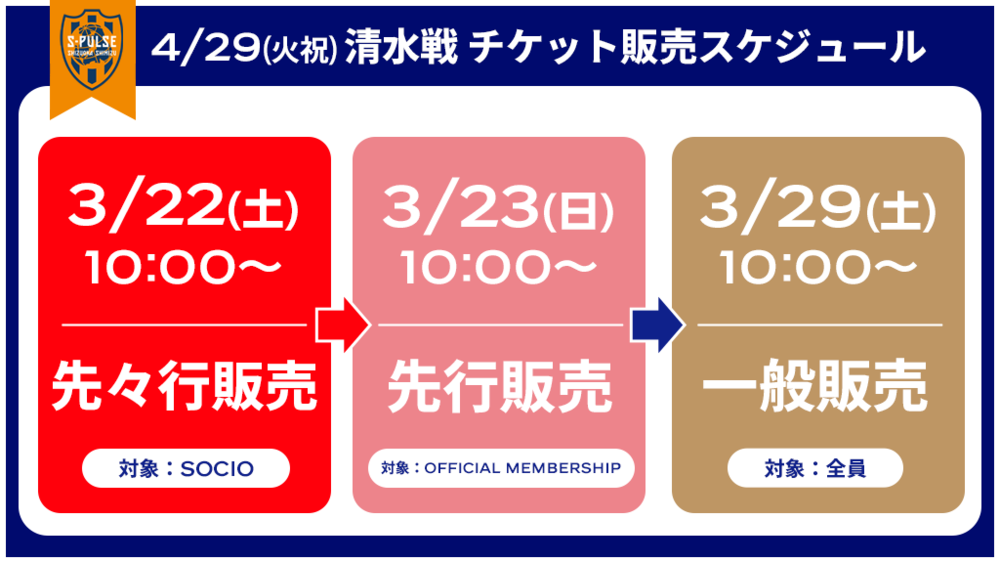 A pré-venda antecipada para SOCIO começará em 22 de março (Sáb). Apenas os membros SOCIO podem comprar com preço de associado (até 4 ingressos por jogo).