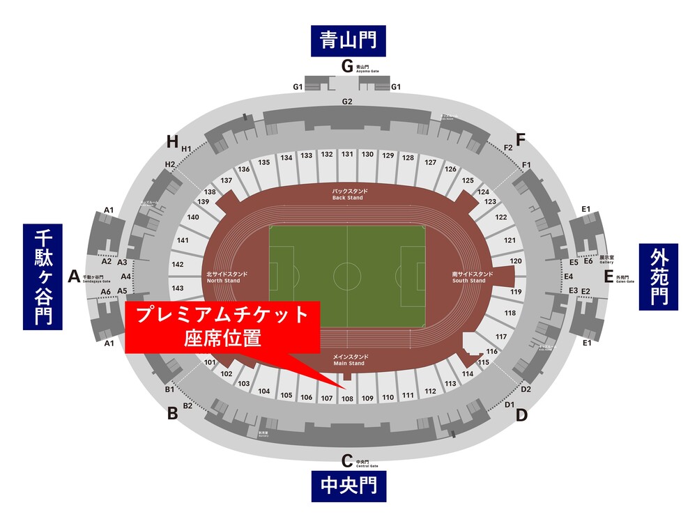 ・Os números dos assentos para aqueles que adquiriram o 'National AOAKA Premium Seat' serão determinados no dia da partida. Não é possível escolher o assento, portanto, agradecemos a sua compreensão.