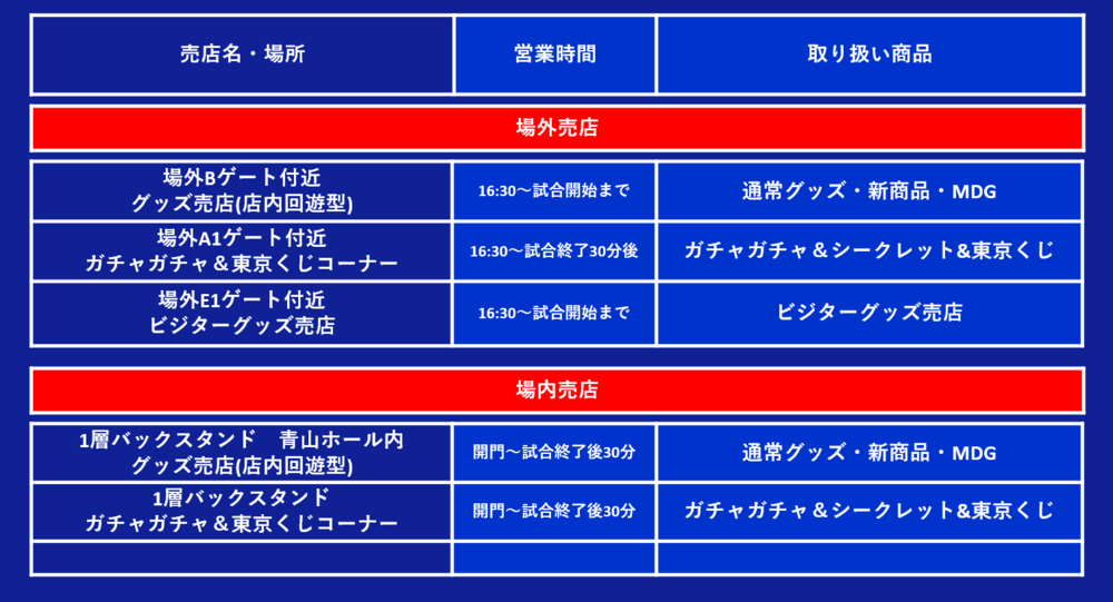 25 de abril (Sex) 2025 Meiji Yasuda J1 League 12ª rodada vs Gamba Osaka (Início às 19:30 / Japan National Stadium), teremos uma loja de mercadorias e uma área de gacha gacha.
