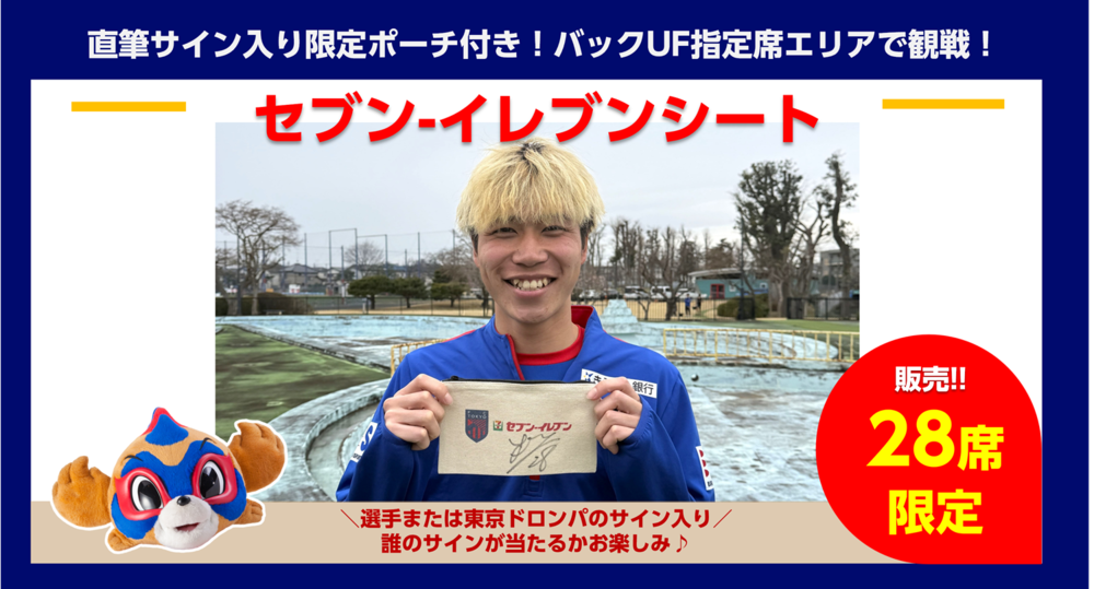 Os "Assentos Seven-Eleven" desta temporada vêm com uma bolsa exclusiva com autógrafos de jogadores ou do TOKYO DOROMPA. Aproveite esta oportunidade para vir assistir aos jogos do FC Tokyo com sua família e amigos!