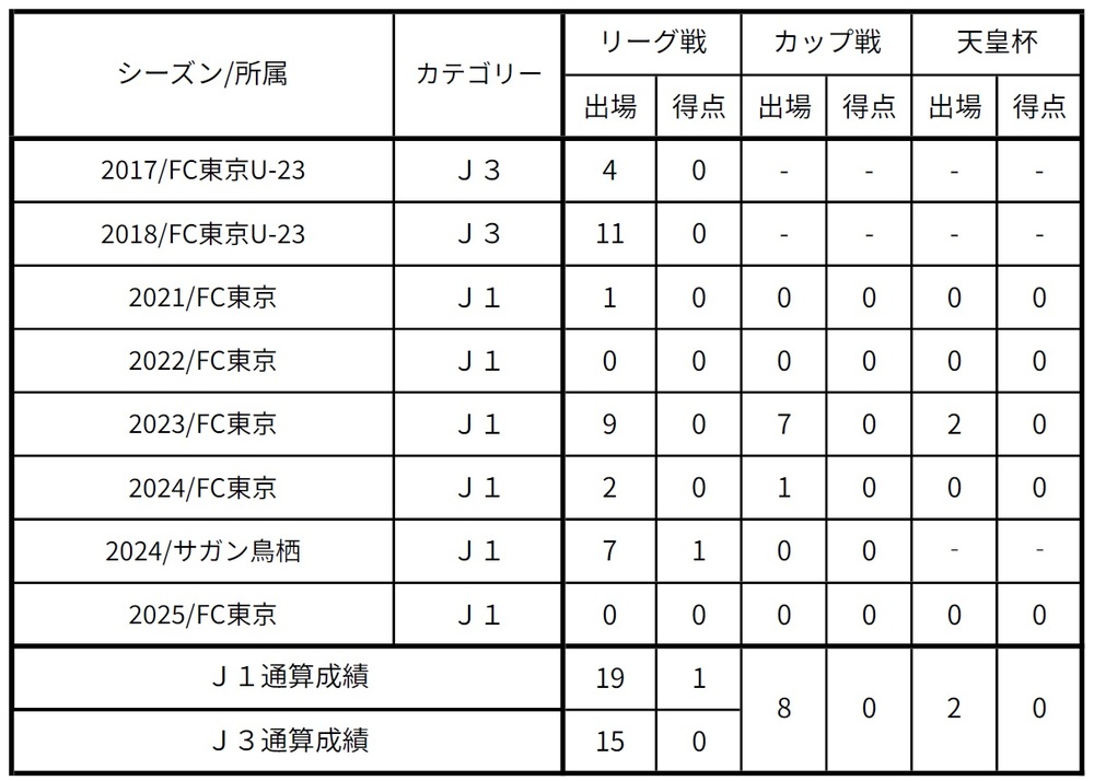 ※Registrou 3 partidas e 1 gol na Copa do Imperador em 2021, quando estava na Universidade Juntendo
