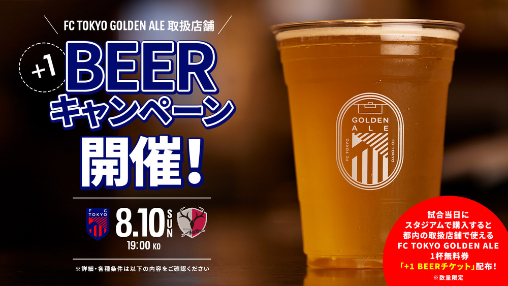 No dia 10 de agosto, para quem comprar 'FC TOKYO GOLDEN ALE' ou 'FC TOKYO PALE ALE' na partida contra o Kashima Antlers, será distribuído um '+1 BEER Ticket' (vale cerveja GOLDEN ALE grátis) que pode ser usado em lojas que vendem GOLDEN ALE na área metropolitana de Tóquio.