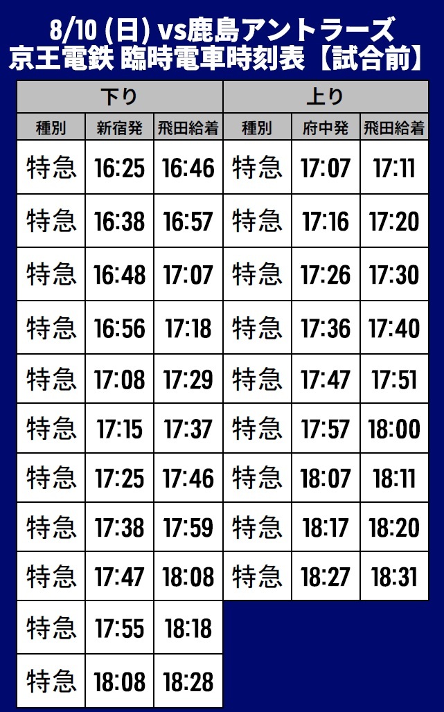 10 de agosto (Dom) 2025 Meiji Yasuda J1 League Rodada 25 vs Kashima Antlers (Início às 19:00 / Ajinomoto Stadium) informações sobre o transporte temporário (ferroviário), ônibus shuttle e ônibus de linha serão fornecidas.