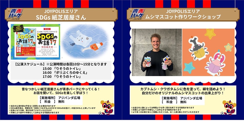 23 de setembro (Ter, feriado) 2025 Meiji Yasuda J1 League Rodada 31 vs Avispa Fukuoka (Início às 18:00 / Ajinomoto Stadium), informamos as atrações do AO-AKA PARK supported by JOYPOLIS.