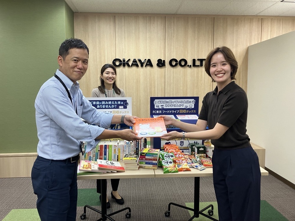 Instalamos uma caixa de coleta exclusiva na sede da Okaya Koki Co., Ltd. em Tóquio e, com a cooperação dos funcionários, realizamos uma campanha de doação de alimentos e livros com o objetivo de reduzir o "desperdício" de alimentos excedentes em casa e livros que não são mais lidos.