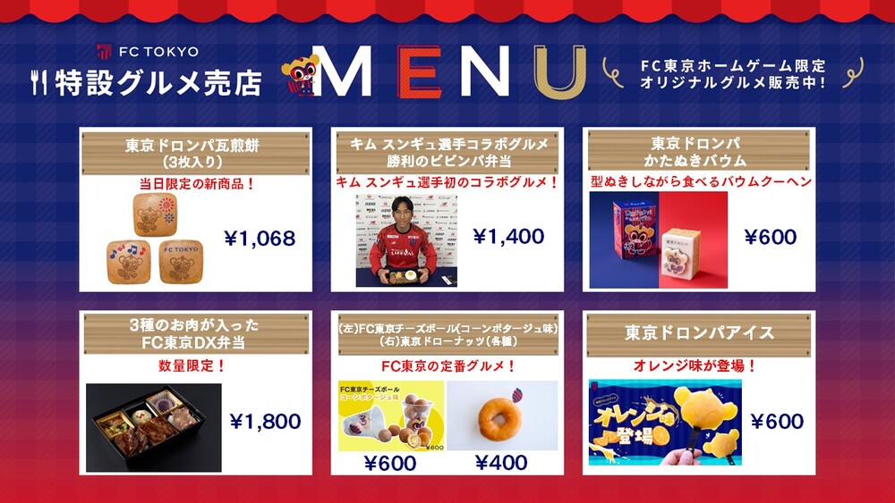 É uma barraca de alimentos que vende comidas gourmet originais exclusivas para os jogos em casa do FC Tokyo.
