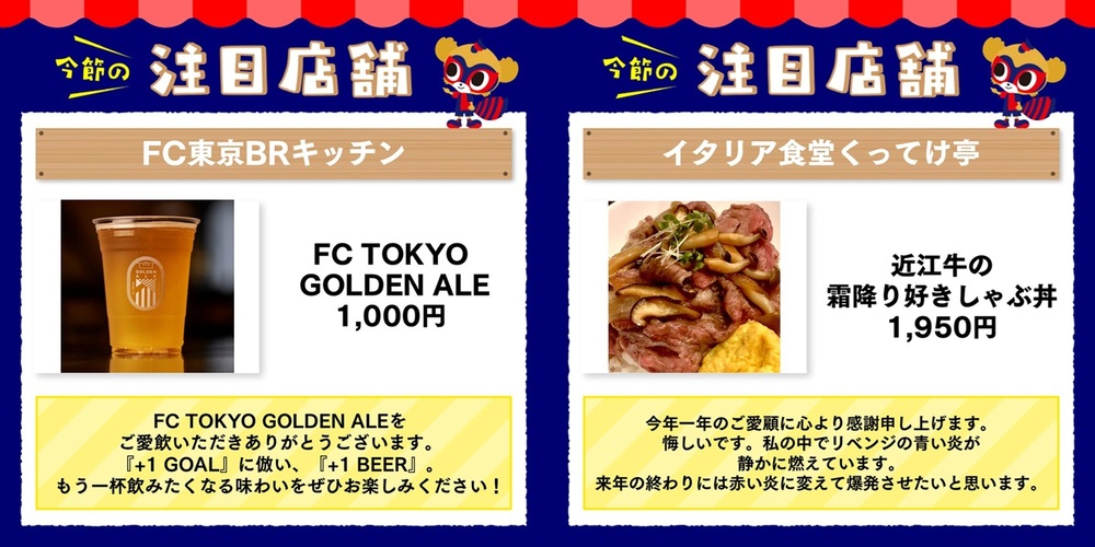 Por favor, continue aproveitando a gastronomia dos estádios do FC Tokyo, 'Staguru Tokyo'.