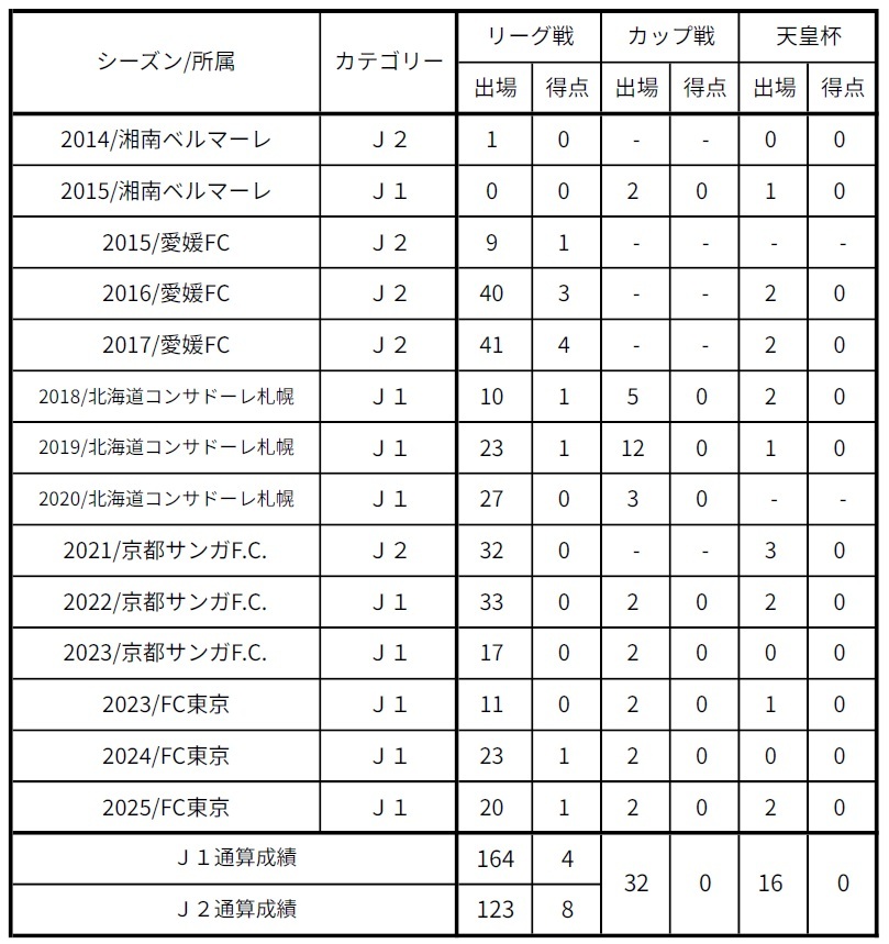 └2015.9-2015.12 Ehime FC * Empréstimo temporário