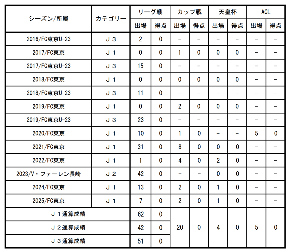 *Na temporada de 2016, jogou como jogador registrado da categoria 2 do FC Tokyo