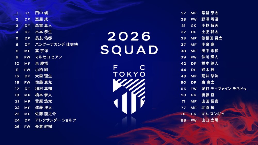 Sobre a formação da equipe principal do FC Tokyo na Liga Meiji Yasuda J1 Centenário