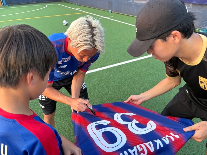 Além disso, na demonstração de dribles, ele mostrou explicações específicas como "mudar o ritmo, infiltrar-se na defesa adversária", e os alunos da escola ficaram completamente absorvidos ouvindo as histórias do jogador Nakagawa!