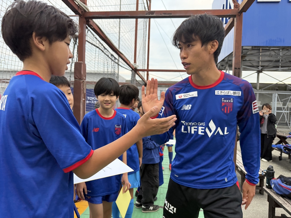 Depois disso, o jogador Kou compartilhou dicas e pontos importantes sobre os temas da escola, "controle" e "passe", baseando-se em sua própria experiência, e os demonstrou na prática.