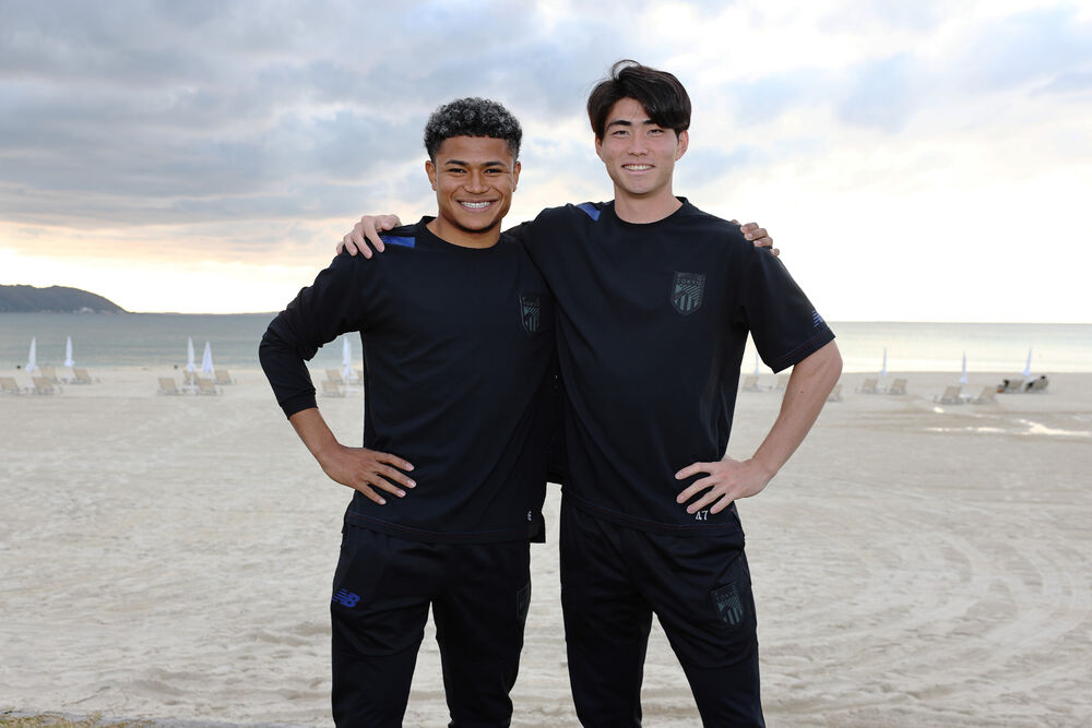 木村诚二和Kashif BANGNAGANDE。从U-15深川开始,多年的“盟友”在本赛季再次在东京穿上同一件球衣。晋升到一线队后,经历多次租借不断成长的木村,在上赛季成为巴黎奥运世代U-23日本国家队的主力,积累了世界大赛经验后回到了红蓝队。另一方面,Kashif BANGNAGANDE在东京不断磨练,2023年3月完成了国家队首秀。虽然因伤未能参加巴黎奥运会正赛,但他已进化为场上独具一格的存在。两位走过不同道路的球员,在2025赛季各自进化后再次相遇。究竟他们对未来有何想法?后篇中,他们谈论了新赛季的足球、彼此的表现以及背号。