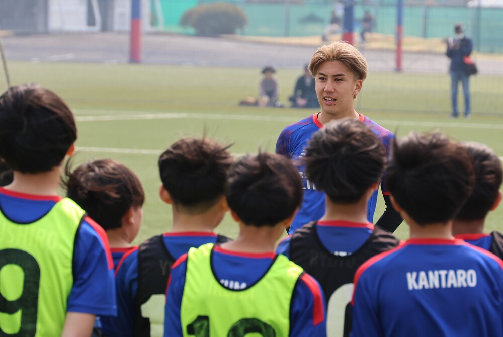 安斋曾在FC东京U-15深川队背负10号球衣,高中升入青森山田高中。之后进入早稻田大学学习,并提前一年从上赛季开始成为职业球员。他讲述了自己走过的道路,孩子们也认真聆听了他的话语。