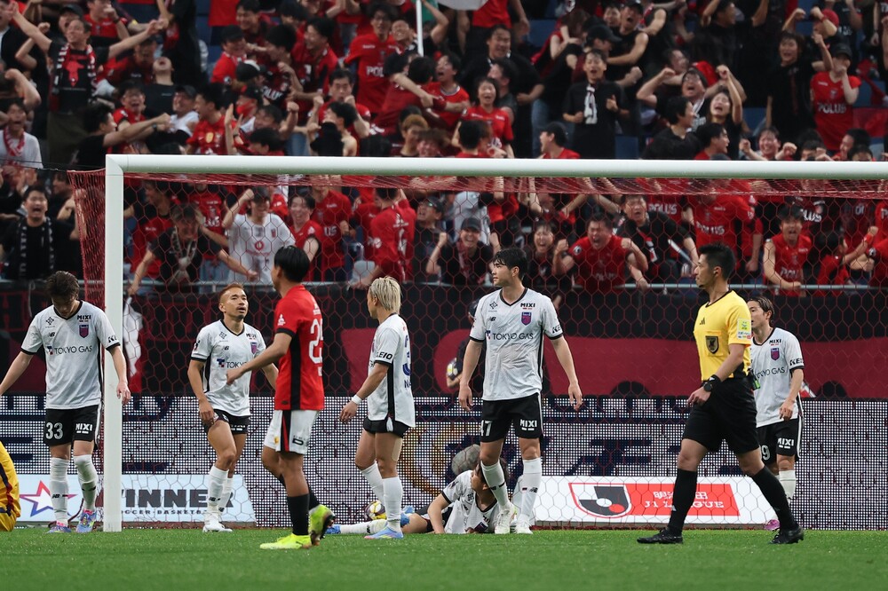 在逐渐被压制的时间段,前半第32分钟,对方通过反击将球带到右侧。随后对方传出了一记传中球,球自由落下时被对方抢先冲入,远藤就在眼前被对方将球推进了球门。