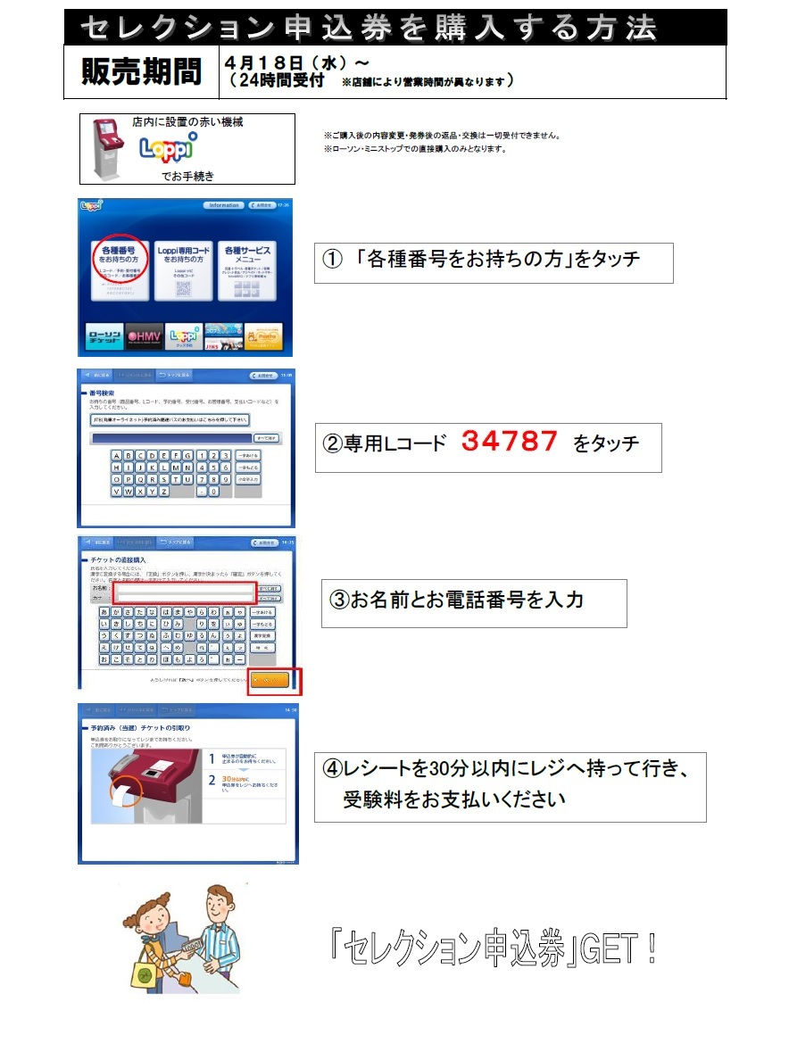 在您附近的Lawson或Ministop内设置的Loppi(洛比)机器上购买选拔赛的“参加申请券”。