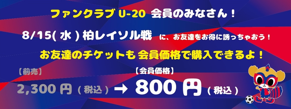 【报名期限延长!】8/15(周三)柏战 会员俱乐部U-20「邀请朋友一起参加!活动」通知