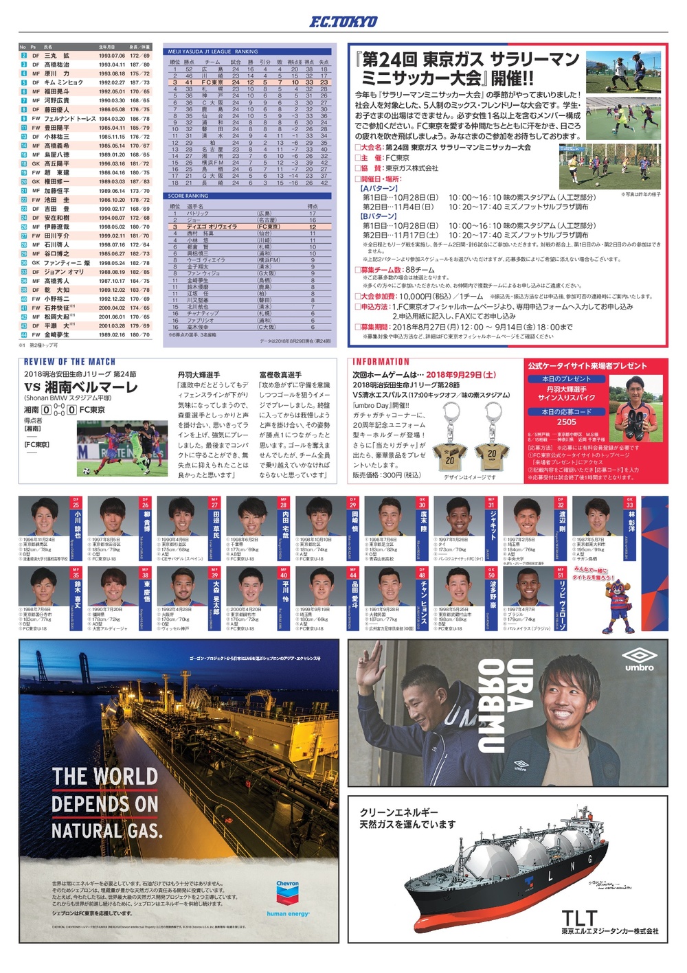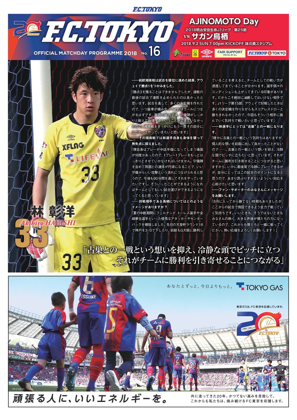 9/2(周日)鸟栖战 官方比赛日程程序说明 2018/9/1 比赛信息 9/2(周日)2018明治安田生命J1联赛第25轮vs Sagan鸟栖(19:00开球/味之素体育馆)的官方比赛日程程序,现通知如下。 □官方比赛日程程序2018 第16号(封面:林彰洋选手) ■规格:B4尺寸(对折)4页■发放地点:各入场门(仅设置访客门)■发放数量:25,000份※在体育场分发的官方比赛日节目数量有限。分发完毕后将停止分发,敬请谅解。 官方比赛日程程序第16号网页版也可以在比赛信息中查看。 鸟栖战比赛信息请点击这里