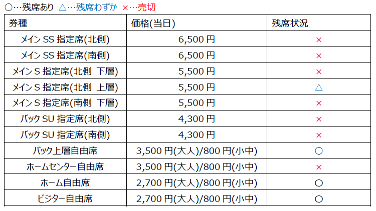 • 9/2(周日)鸟栖战 当日票销售及上层座席说明