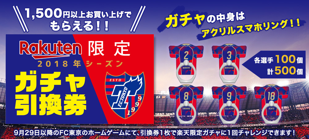 在活动期间,于FC东京乐天市场店购物的顾客,将获得仅此处才能获得的扭蛋兑换券!在指定比赛中,凭一张扭蛋兑换券可以挑战一次乐天限定扭蛋。