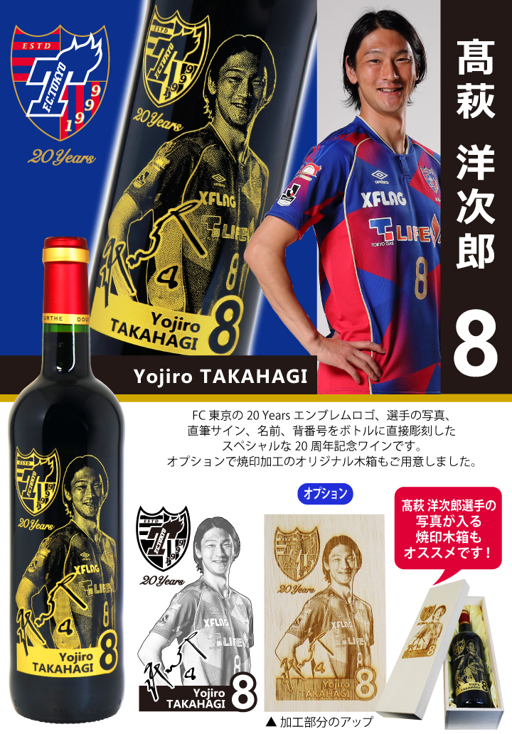 此次将销售“FC东京20周年纪念葡萄酒”。为纪念FC东京成立20周年,这是一款限时发售的高级葡萄酒,瓶身上直接雕刻了队徽、球员照片、姓名和签名。