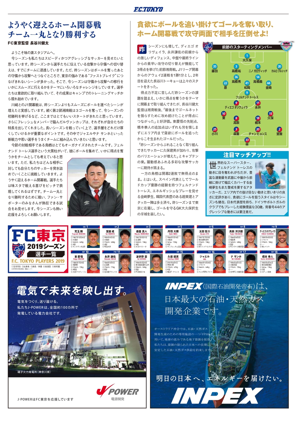 2019年3月10日(周日)明治安田生命J1联赛第3轮 vs Sagan鸟栖(14:00开球/味之素体育馆)的官方比赛日程程序,现通知如下。