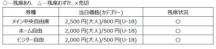 ※主看台中央自由席达到预定数量后,可能会在未提前通知的情况下停止当天票的销售,敬请谅解。
