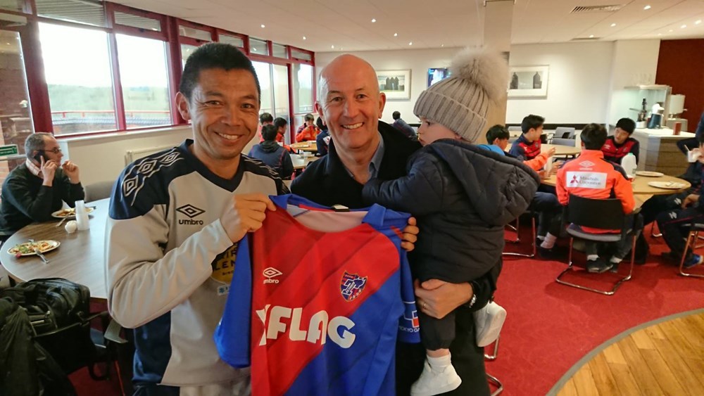 期间,米德尔斯堡足球俱乐部一线队主教练托尼·普利斯前来致意,教练们合影留念。